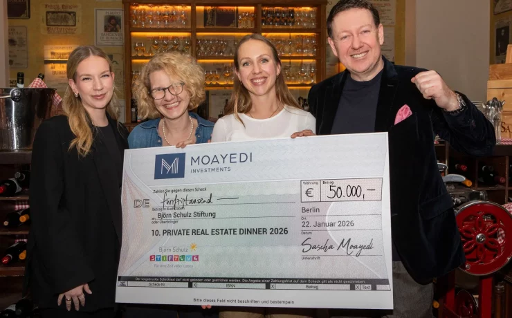 Das 10. Private Real Estate Dinner erlebt 2026 ein Jubiläum: Seit einem Jahrzehnt verbindet das Dinner fachlichen Austausch innerhalb der Immobilienbranche mit einem klaren gemeinnützigen Anspruch.  An diesem Abends konnte eine Spendensumme von insgesamt 100.000 Euro erzielt werden. Dieses Ergebnis ist angesichts eines anspruchsvollen wirtschaftlichen